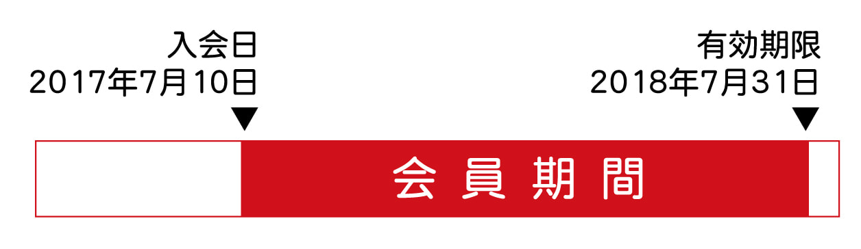お客様の入会日から、1年後の月末が会員有効期限となります。
