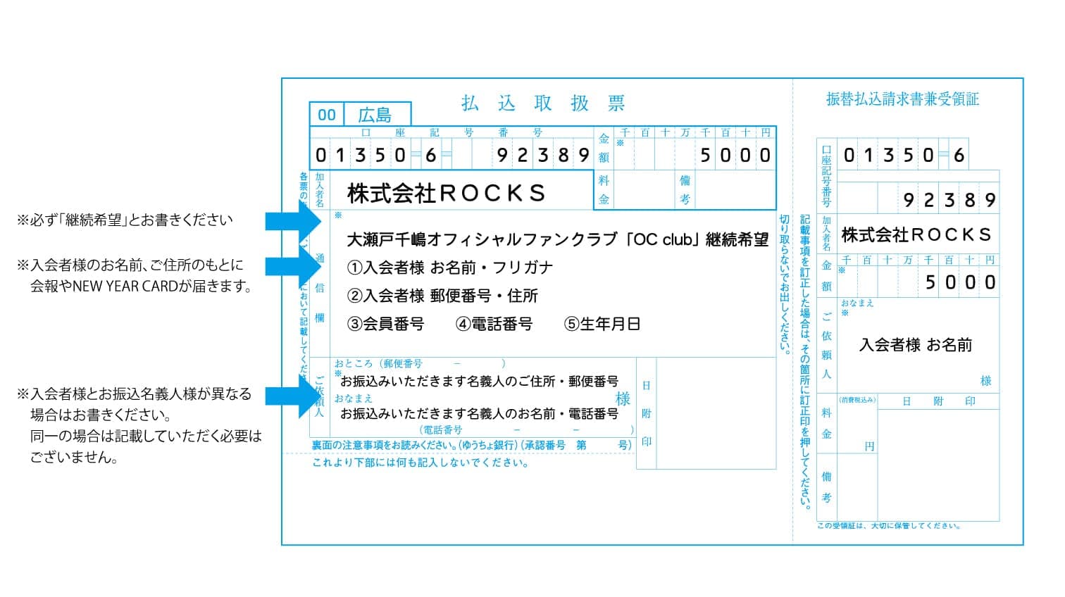「OCclub」への継続は「郵便振替」でお申込みいただけます。