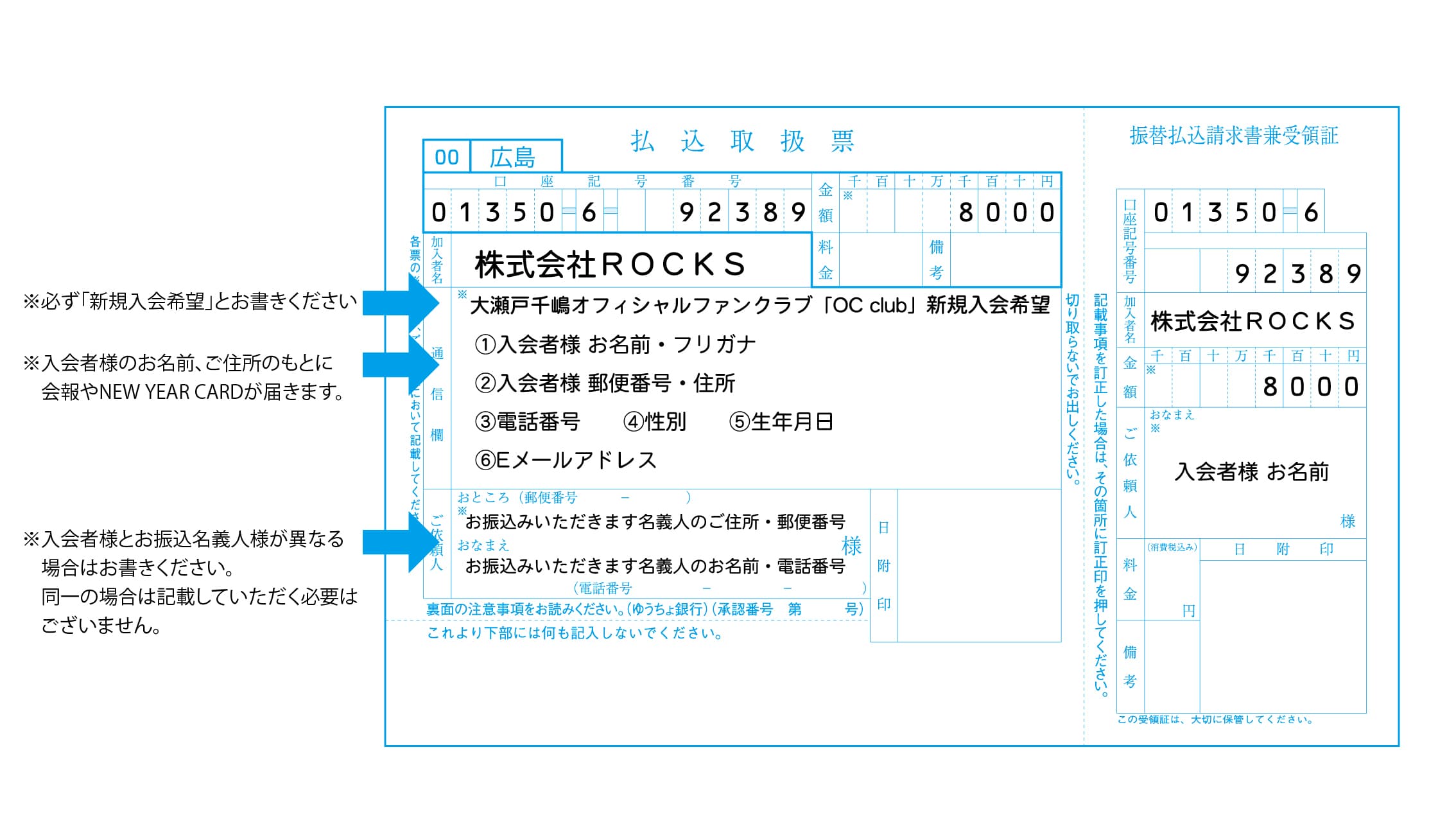 「OCclub」への入会は「郵便振替」でお申込みいただけます。